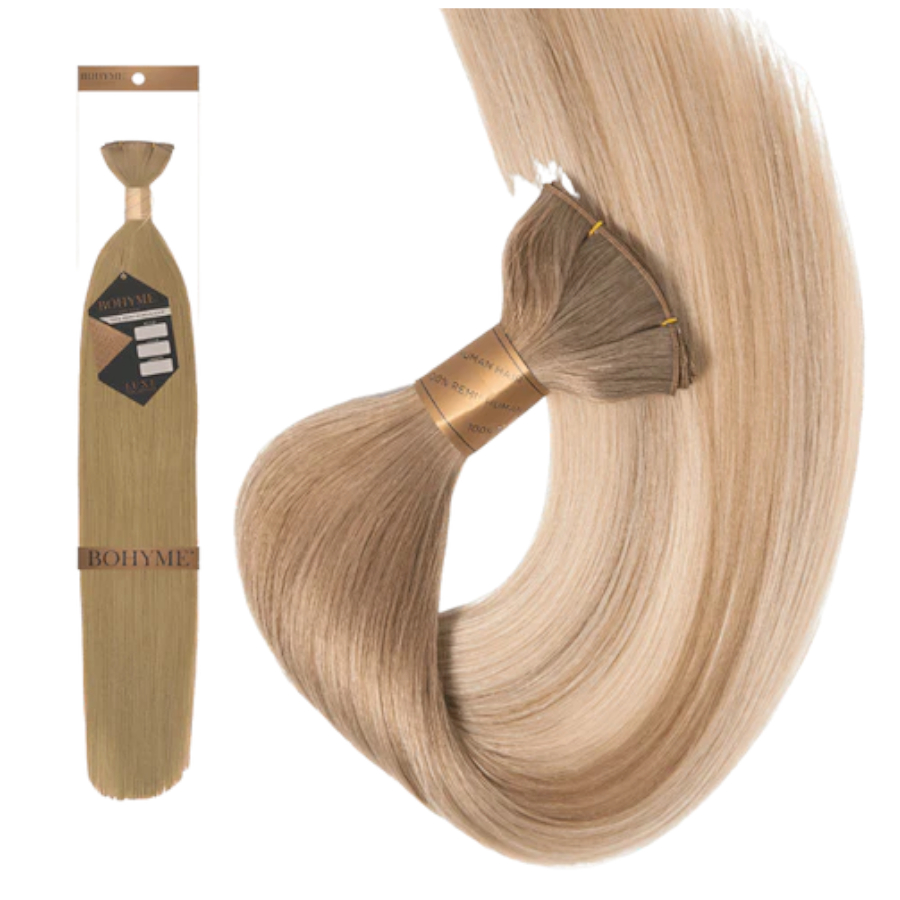 Genius Weft is one of Bohyme’s newest wefts. Genius Weft is comparable in size to Hand-Tied Wefts, but is designed to give you more customization options. Incredibly thin, flat, and light, making it their most customizable weft.